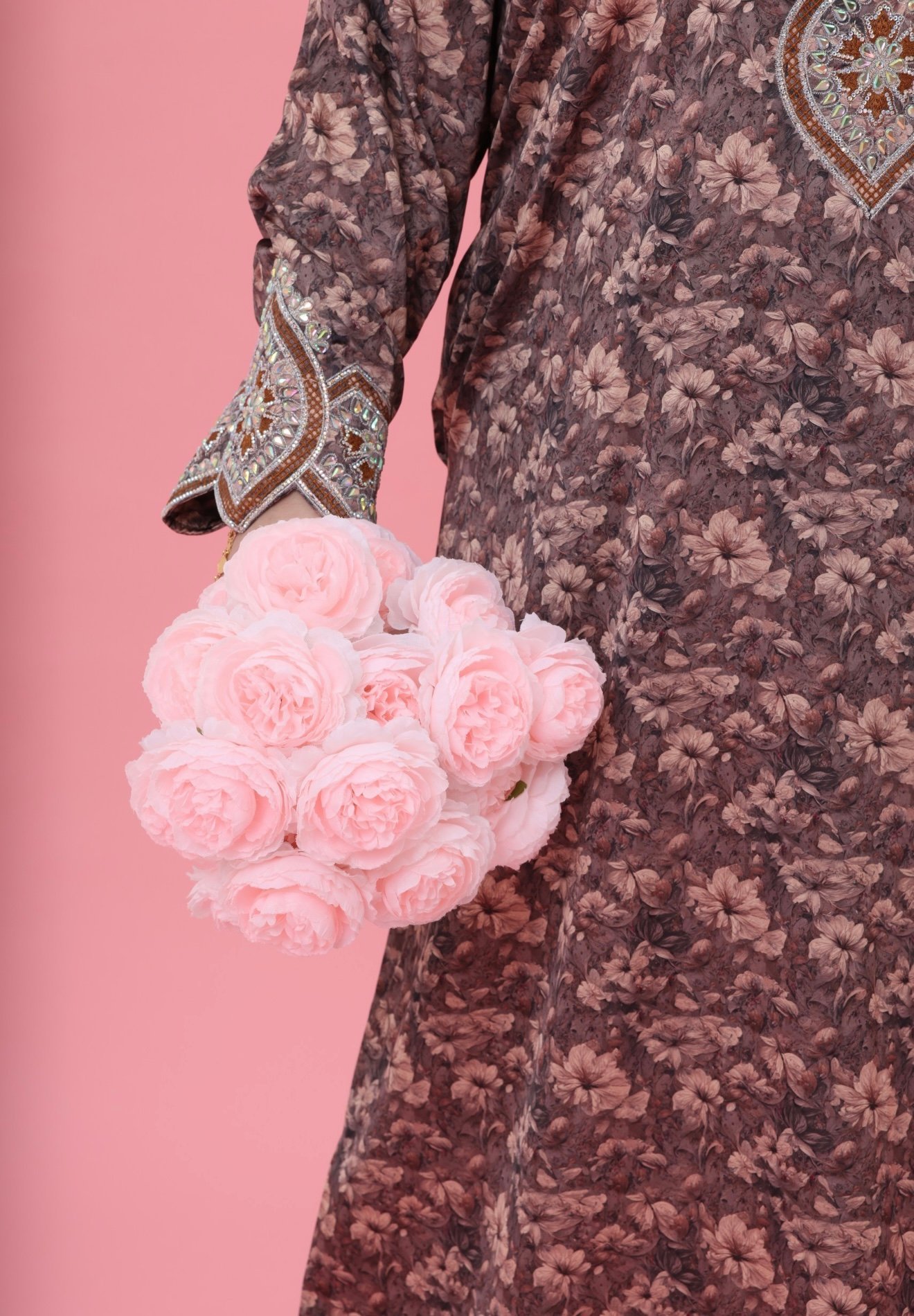 Soft, feminine, and effortlessly elegant — the Mina Badr Royal Pink Mukhawar captures the essence of delicate luxury. Designed in a graceful pink tone with subtle floral beauty, this piece radiates charm and sophistication.