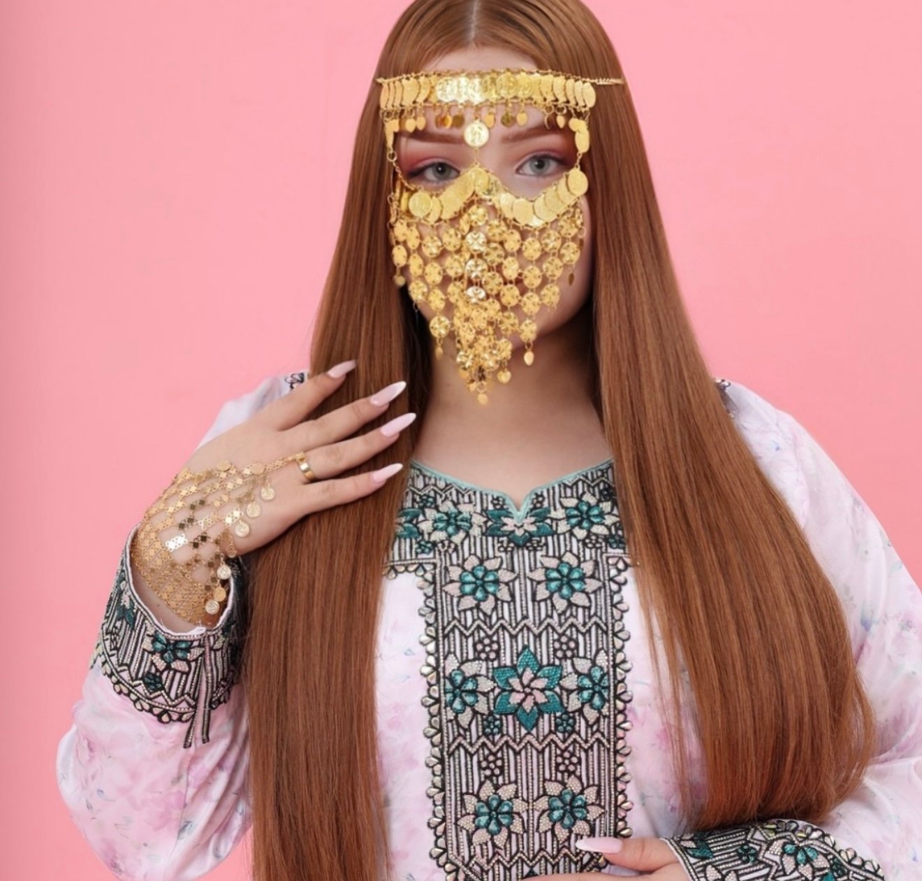 Made with soft flowing fabric that drapes gracefully, this mukhawar offers comfort, elegance, and a flattering silhouette — perfect for special occasions and statement styling.