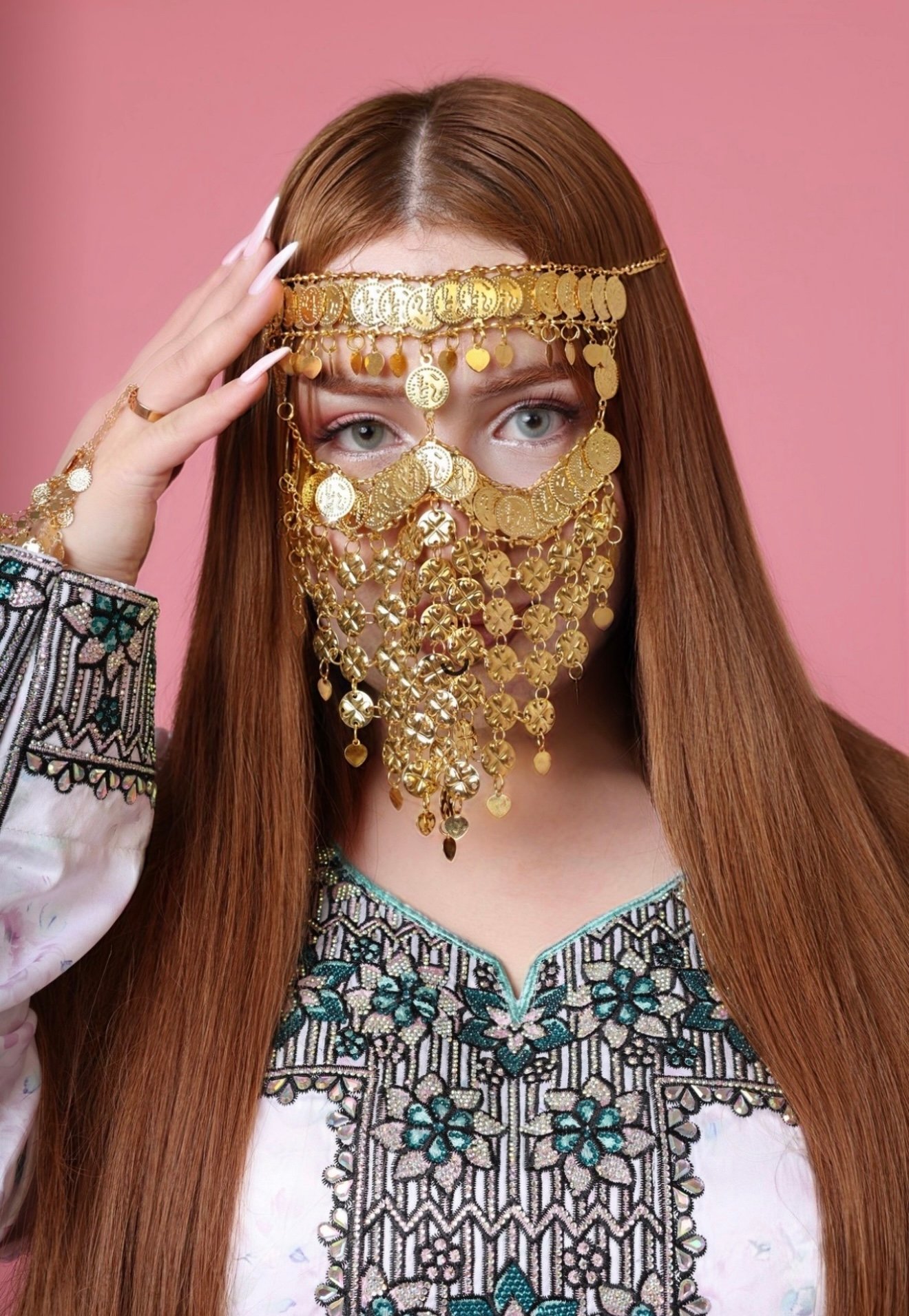 Whether for special occasions or elevated everyday style, this mukhawar embodies signature Mina Badr craftsmanship with a rich royal presence.